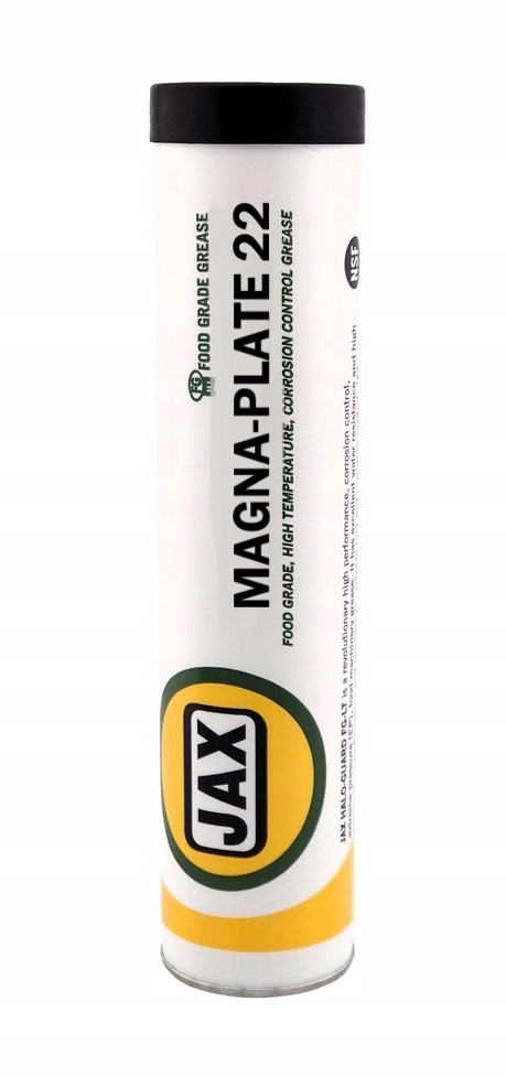Smar dla przemysłu spożywczego NSF H1 JAX Magna-Plate 22 - to produkt opracowany do zastosowań m.in. do zamrażarek oraz pozostałych prac w temperaturze krzepnięcia -68 °C. Smar zagęszczony jest kompleksem sulfonianu wapnia o jakości spożywczej, dzięki czemu zapewnia wyjątkową stabilność mechaniczną, bardzo wysoką nośność oraz niezwykłą odporność na rdzę i korozję. Ponadto charakteryzuje się doskonałą wodoodpornością. Jest to produkt typu food grade, który posiada certyfikat NSF H1 (możliwy przypadkowy kontakt z żywnością) oraz certyfikat HALAL (zgodność w wymaganiami islamu).